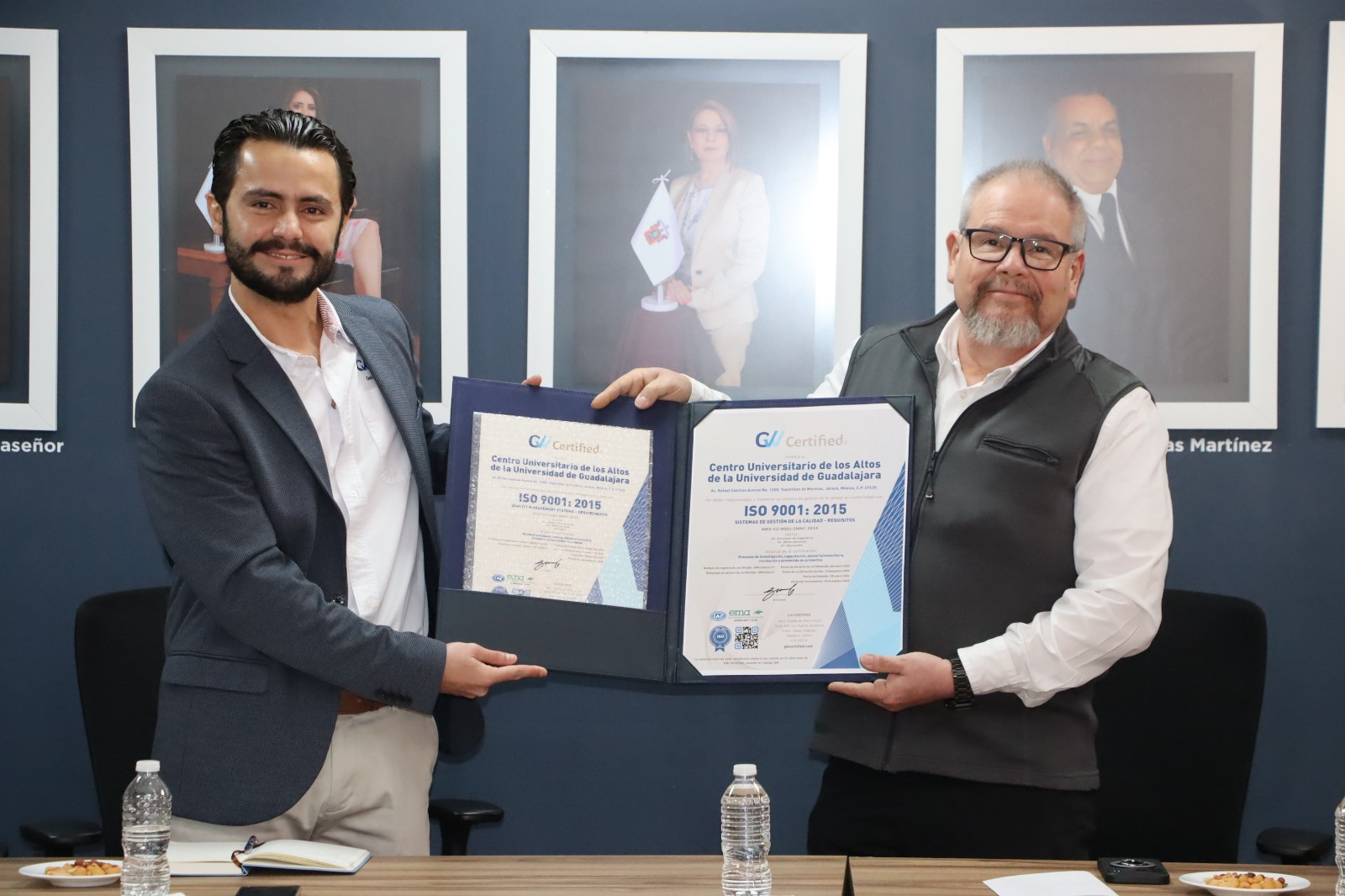 El Rector del CUAltos, Dr. Antonio Ponce Rojo, recibió el certificado por la implementación y mantenimiento de un Sistema de Gestión de la Calidad conforme a la norma ISO 9001:2015, otorgado por Hugo Alberto Barragán García, director de GW Certified.