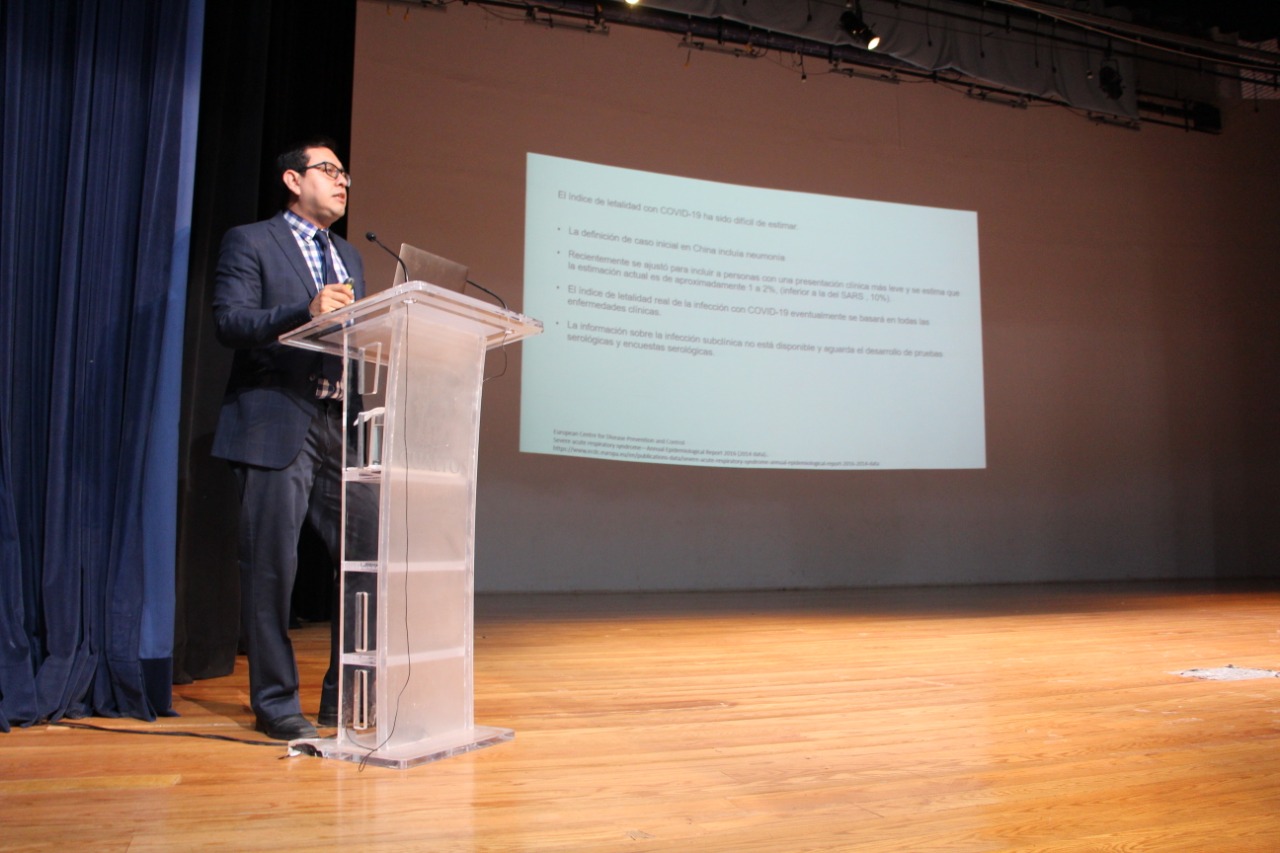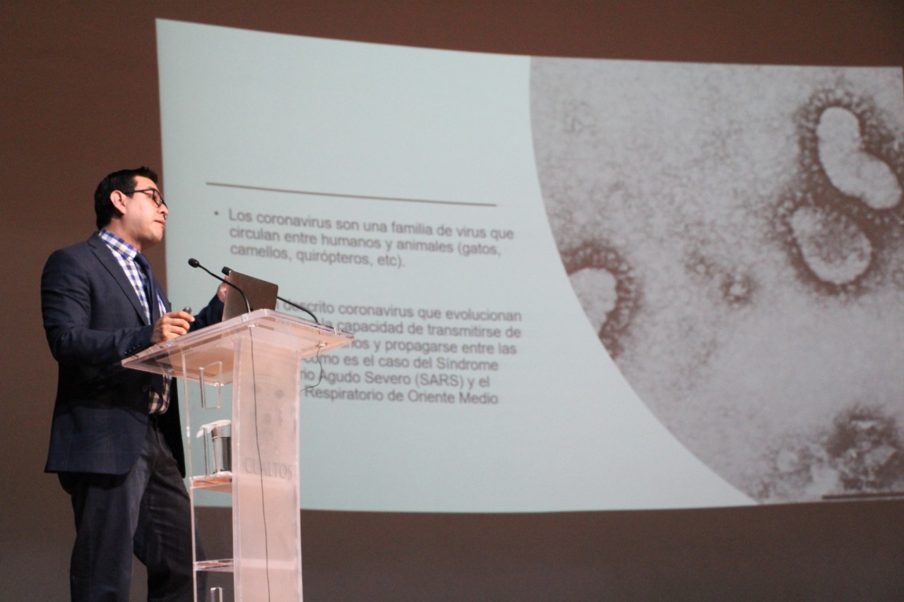 Los últimos descubrimientos científicos en torno al Coronavirus de Wuhan (CoVid19), los tipos de infección, la dinámica de transmisión, así como detalles sobre la sintomatología, casos registrados, características de los huéspedes, evaluación diagnóstico y tratamiento, e información adicional de vital importancia para el conocimiento de este nuevo virus fueron presentados durante la conferencia impartida por el doctor Jaime Briseño Ramírez, Jefe del Departamento de Clínicas del Centro Universitario de Los Altos.
