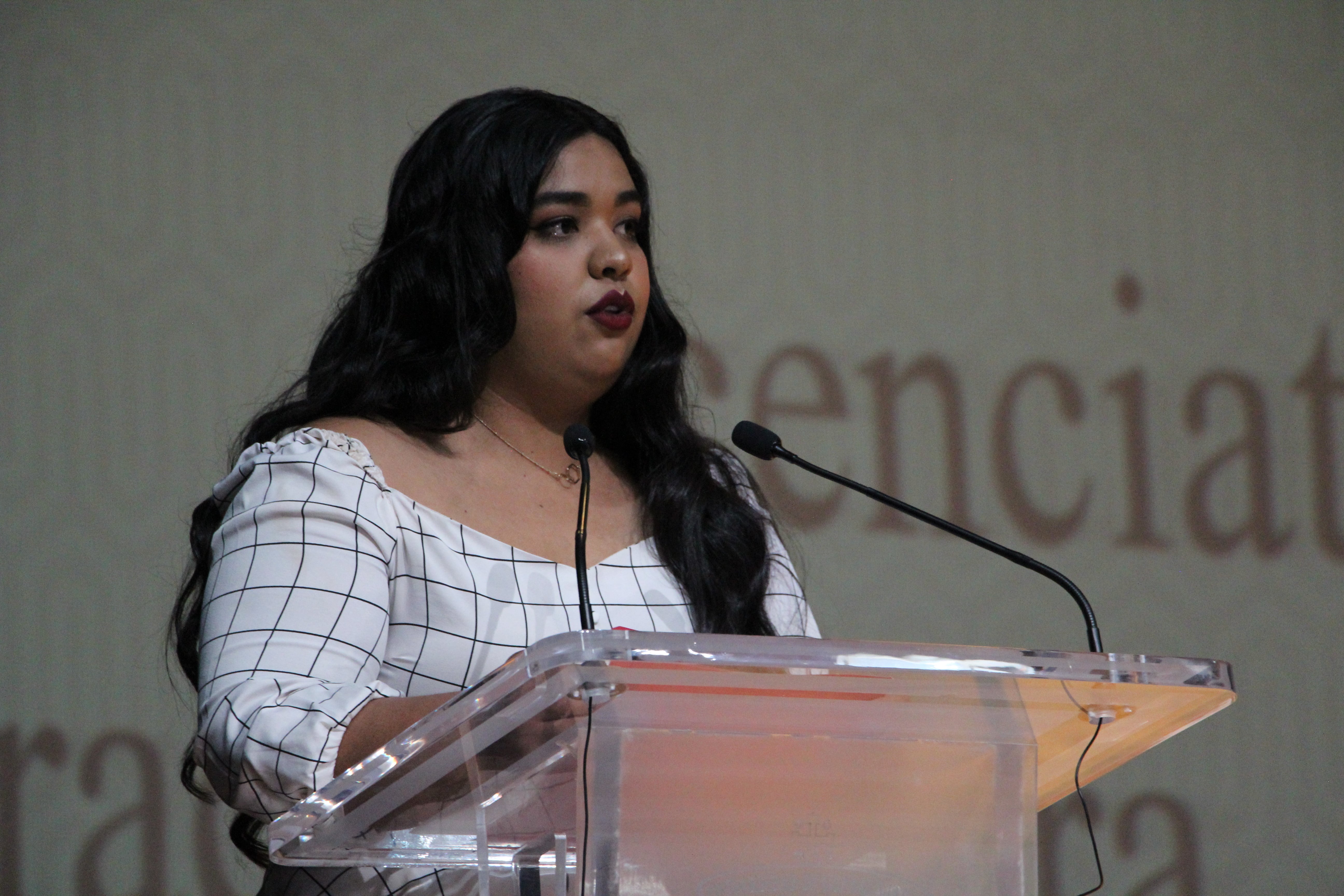 Verónica Rodríguez Vera, expresó emocionada un mensaje de felicitación en representación de sus compañeros; a partir de ahora “aunque la expectativa de lo que ocurrirá más adelante, pueda dejarnos un nudo en el estómago, sólo nos queda mirar nuestras huellas y saber que a donde vamos, vamos a hacer camino al andar”.