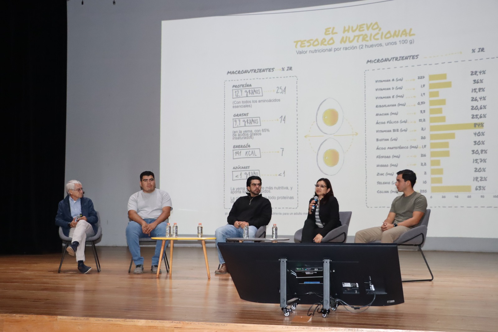 La segunda mesa llevó por título “Oro blanco: Del corral a la mesa”, en la cual se explicó que el potencial genético actual de las aves demuestra una productividad sobresaliente: pueden generar hasta 28 kilogramos de masa de huevo, equivalentes a aproximadamente 448 piezas con un peso promedio de 62.2 gramos, logrando este rendimiento con un consumo de 57.680 kilogramos de alimento y una tasa de conversión de 2.06. En esta mesa se contó con la participación de Juan Antonio Serratos Vidria, Gael Muñoz, Eduardo Ramírez, Juan Pablo Soto y Leticia Orozco.
